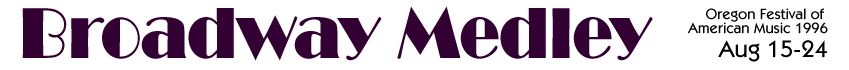 One of the most important sources of the classic Songbook has always been, of course, Broadway. With Oregon Festival of American Music 1996 we begin what we plan to be an ongoing exploration and celebration of Broadway from its earliest years through the golden ages of Musical Comedy and Mustical Theatre. This year the Festival takes a break from concerts to offer 2 fully-staged musicals from the early years of the American Musical: Jerome Kern, Guy Bolton and P. G. Wodehouse's legendary 1917 Princess Theatre masterpiece Oh Boy! and George Gershwin, Ira Gershwin, George S. Kaufman and Morrie Riskind's 1931/33 musical comedy political satire Of Thee I Sing. Add to that our annual dinner-dance, this year styled This Side Of Paradise, an appearance by Alsop's String Fever, and our grand finale at Cuthbert Amphitheatre, this will be another year of fine tunes you will never forget!